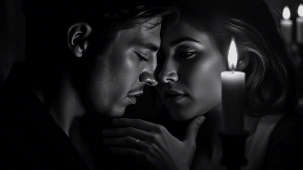 Chciałem, byście poczuli ten moment – kiedy nie trzeba nic mówić, bo wszystko jest już zapisane w spojrzeniu, w delikatnym muśnięciu palców, w ciszy, która drży od napięcia. To jest ta subtelna granica między tęsknotą a spełnieniem, między światłem a mrokiem, gdzie emocje lśnią najjaśniej.