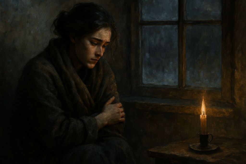 jak człowiek bez światła – przy gasnącej świecy.